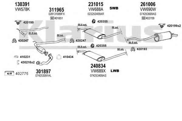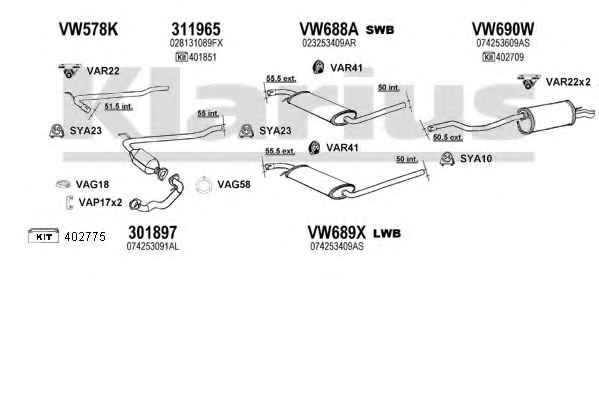 | KLARIUS   Франція | 931464U | Система випуску відпрацьованих газів | Вибрати | ||