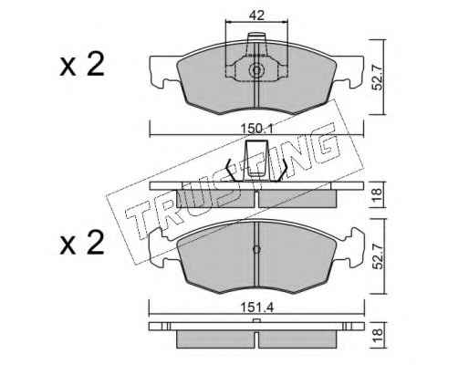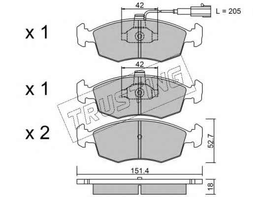| TRUSTING | 278.4W | Комплект гальмівних колодок, дискове гальмо | Вибрати | ||